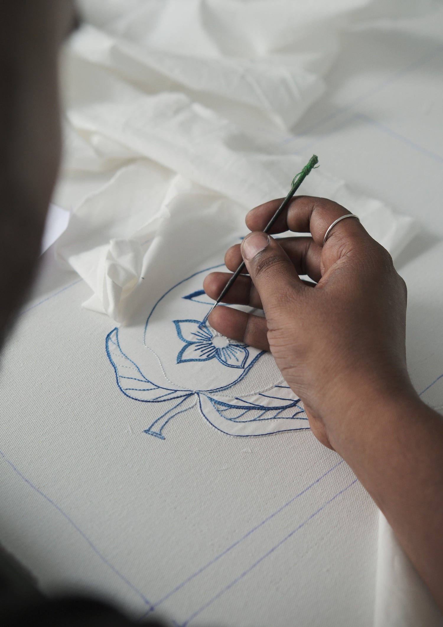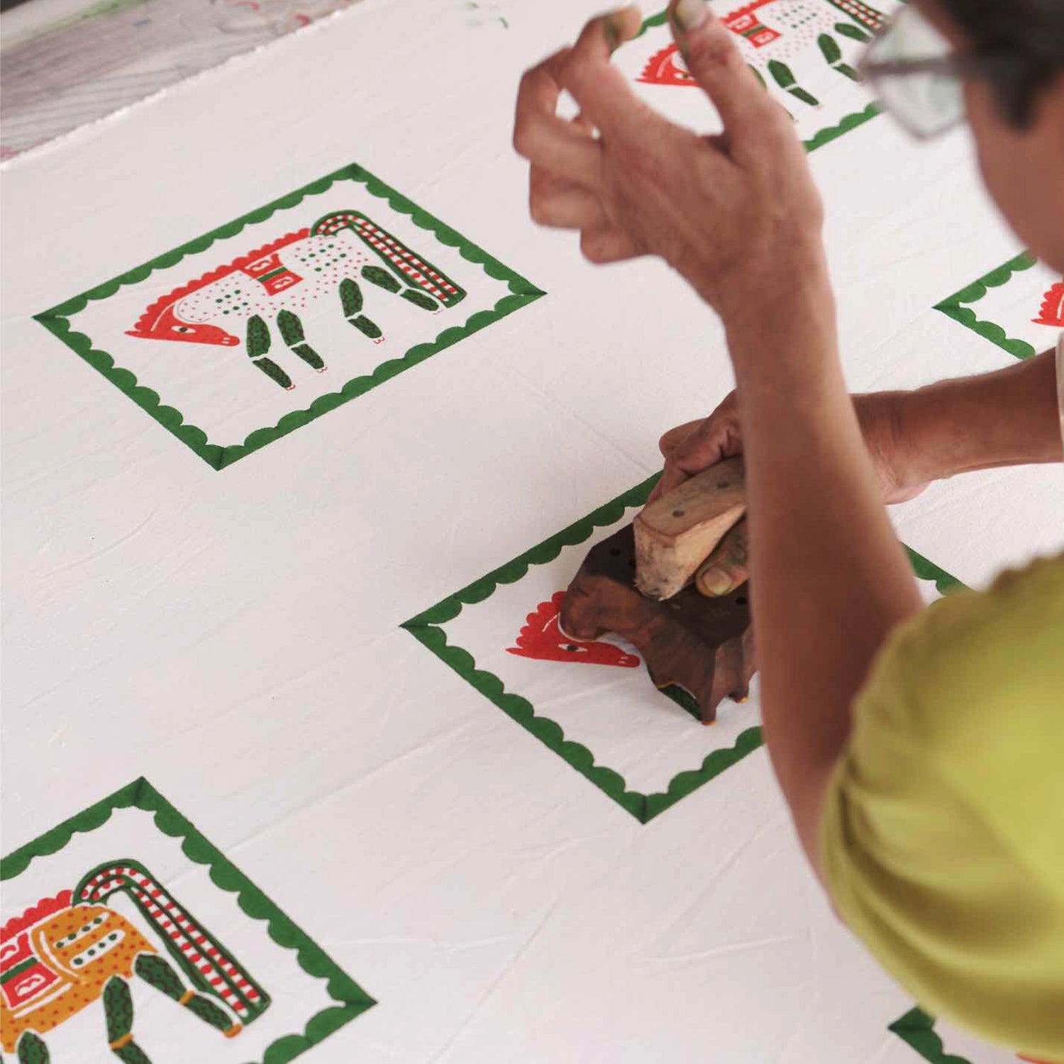 The oldest method of textile printing, Block Printing includes dipping engraved wooden blocks in dye and impressing them onto the fabric. It is practiced in several regions of India, primarily in Rajasthan. We use discharge and pigment hand block printing for our products to create intricate patterns inspired by nature or traditional Indian motifs.