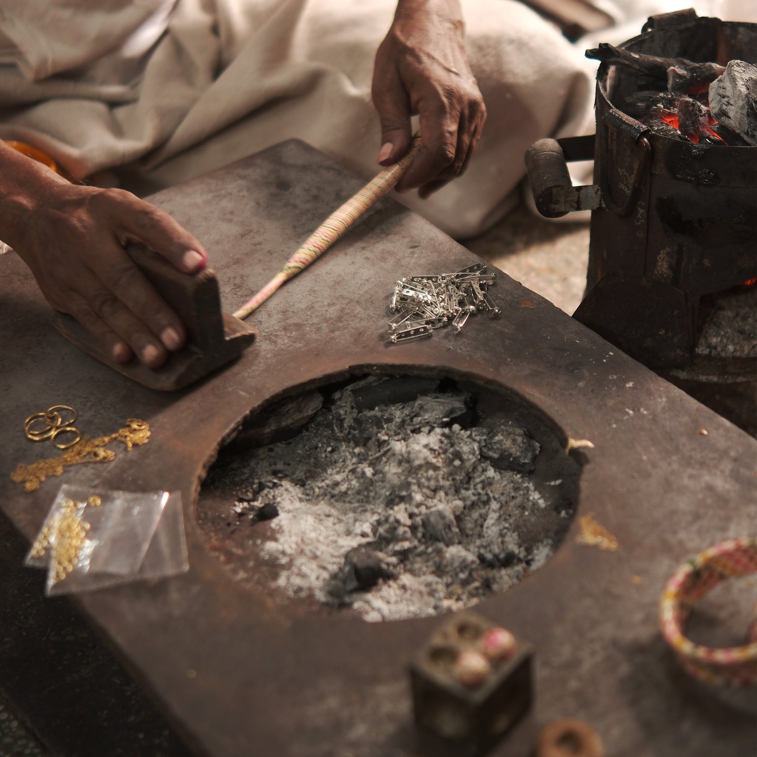 Every piece of jewellery that we offer is made by hand, using hand casting, meenakari and lac. Rajasthan is one of the major producers of hand-made jewellery made through these techniques.