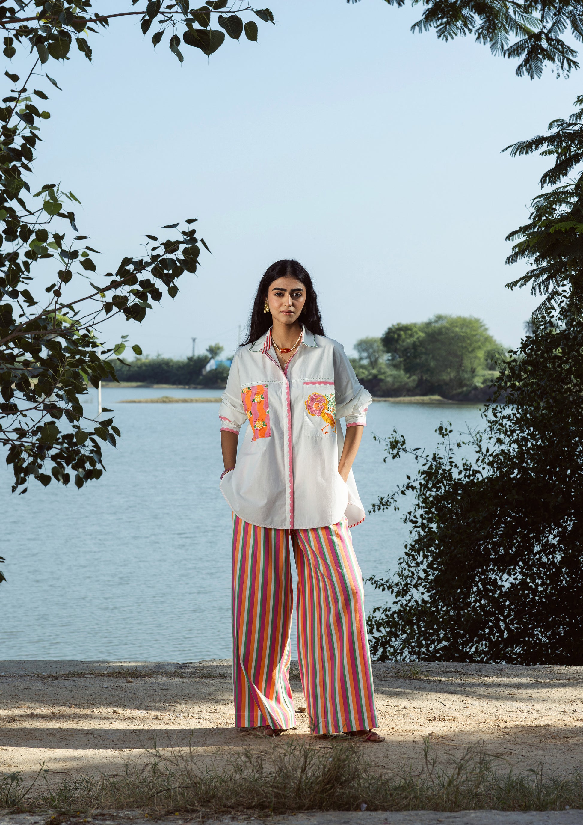 Paired here with our Mahal Blouse in Chikankari and the Jaigarh Shirt in River Crane Block Print.